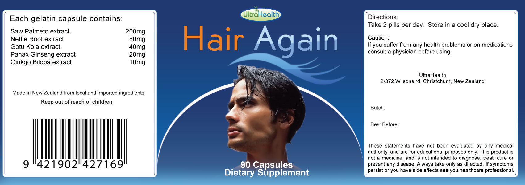 Hair Again will decrease the level of DHT in the body, and supply necessary nutrients to the hair follicles. Reversing hair loss and improving the overall health of your hair.